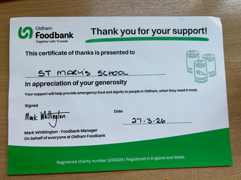 We want to extend a huge thank you to our families for the wonderful Easter egg donations this month. Thanks to your support, we were able to provide a sweeter holiday for those supported by Oldham Children’s Hospital Ward and Oldham Foodbank. Both organisations have sent their sincere thanks to our pupils for their community spirit.