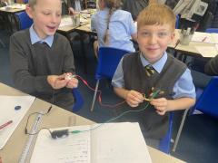 Today we investigated the electrical conductivity of different materials. We found that metals are usually conductors and paper, plastic and rubber are insulators.