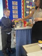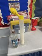 We mixed bicarbonate of soda and vinegar and made a frothy solution with carbon dioxide filling up the balloon.